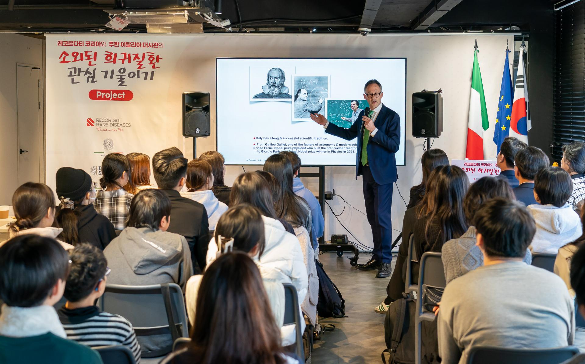 In vista della Giornata Mondiale delle Malattie Rare, l’Ambasciata d’Italia a Seoul e Recordati, azienda italiana fondata nel 1926 che oggi opera in circa 150 Paesi, hanno organizzato l’evento “Focused on the Few”, presso i locali di High Street Italia, la vetrina del made in Italy in Corea gestita dall’Istituto del Commercio Estero.