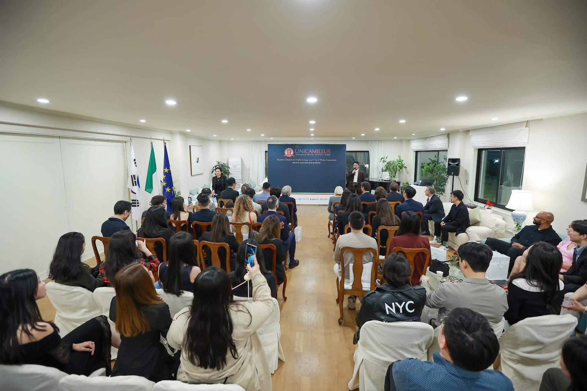 Seoul, 16 aprile 2025 – Si è svolto presso la Residenza dell’Ambasciatrice d’Italia a Seoul, Emilia Gatto, l’evento di presentazione del “Master Degree in Implantology and third Molar extraction”, realizzato congiuntamente dall’Università di Roma UNICAMILLUS e il Gangnam International Implant Academy di Seoul. Oltre 80 gli studenti che partecipano al Master, provenienti – oltre che da Italia e Corea – anche da USA, Messico, Mongolia, Austria, Cambogia, Canada, Nuova Zelanda, Egitto, Indonesia, Australia.