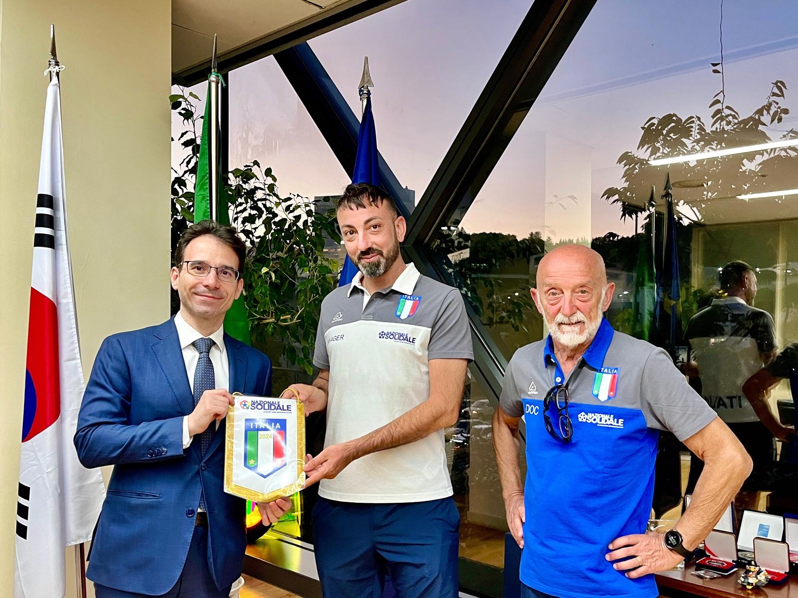 세계 40여 개국이 참가하는 홈리스 월드컵에 참가하기 위해 한국을 찾은 ‘국가 연대 축구팀’ 선수들이 주한 이탈리아 대사관을 찾았다. 이번 방문은 에밀리아 가토 주한 이탈리아 대사가 주최한 제 1회 세계 이탈리아 스포츠의 날 기념 행사의 일환이다.